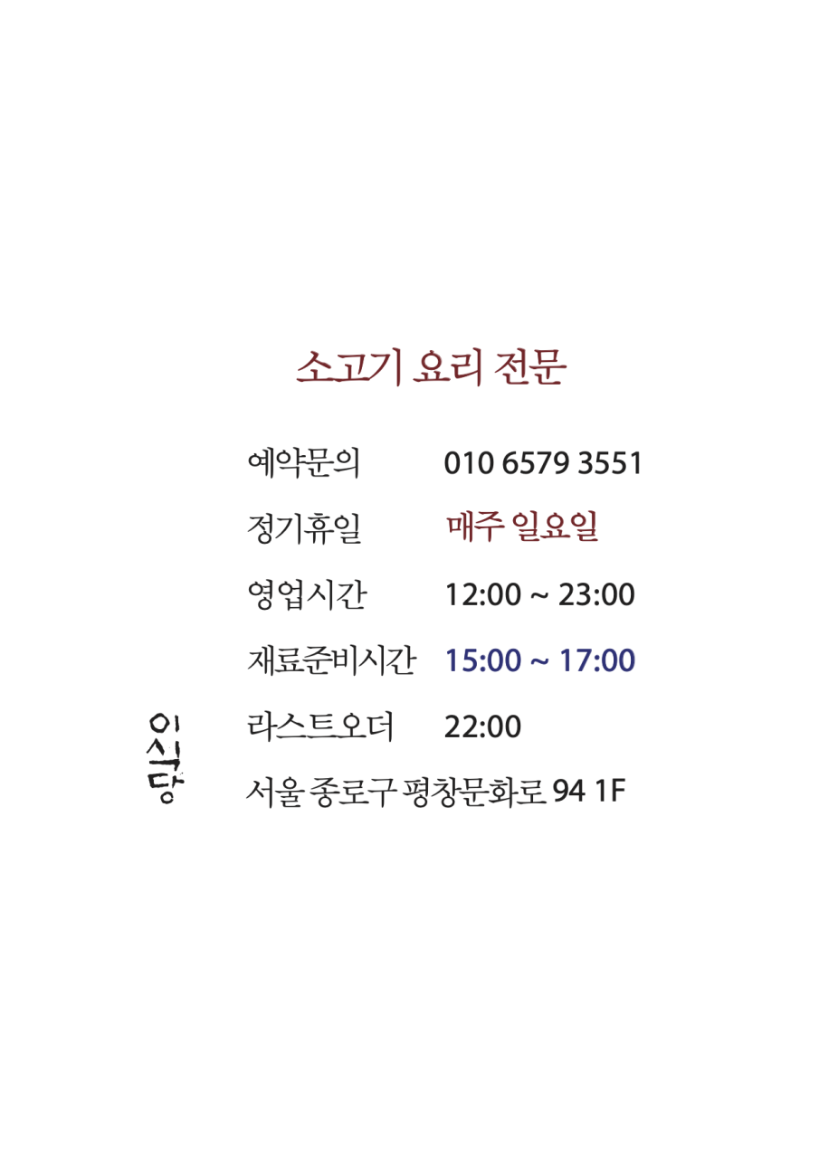 * 주소 : 대한민국 서울 종로구 평창문화로 94 1층 (평창동 152-2)