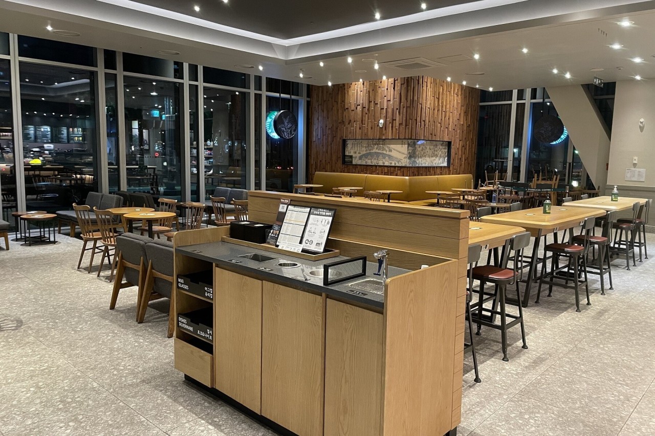 - 명동에서 매장도 넓고 좌석도 많고 매장 깔끔하게 정리가 잘 되어있고, 제일 마음에 드는 건 손님이 많지 않아서 쾌적해요^^ 오피스 건물 1층에 있다보니 명동 골목쪽 스타벅스보다 조용하고 쾌적하고 직원분들 친절하고 좋아요.